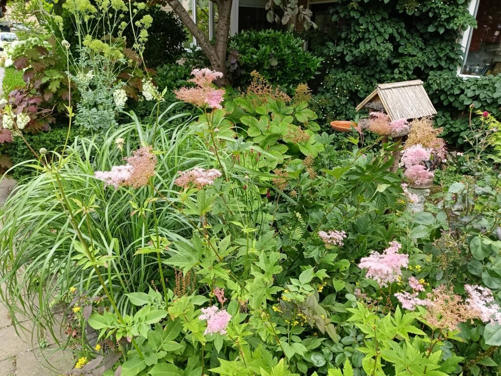 2025 50 m² Ontwerpdoelen Schaduw voortuin reorganiseren Ontwerpdoelen Kleur en textuur in alle seizoenen Snoeien heesters en krenteboom Bestaande Planten Behouden Prachtige meerstammige krenteboom behouden en gesnoeid