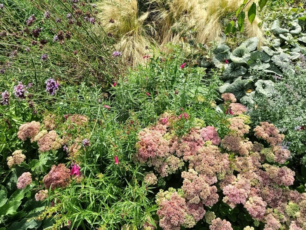 2024 450 m² Ontwerpdoelen Borders opnieuw beplant Ontwerpdoelen Schapenhek geplaatst Kleur en textuur in alle seizoenen Grote bomen gesnoeid. Amberboom geplant Bestaande Planten Behouden Grote fluweelhortensia verplant